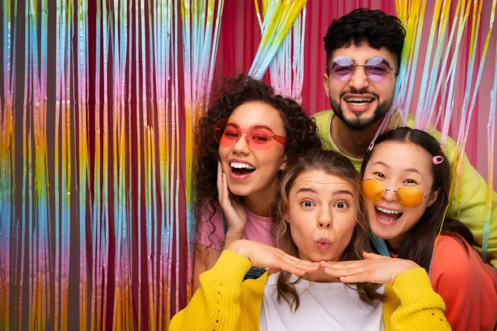 - Open-Air Booth – Spacious setup with studio lighting for large groups and big smiles.